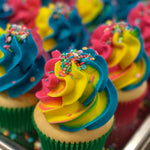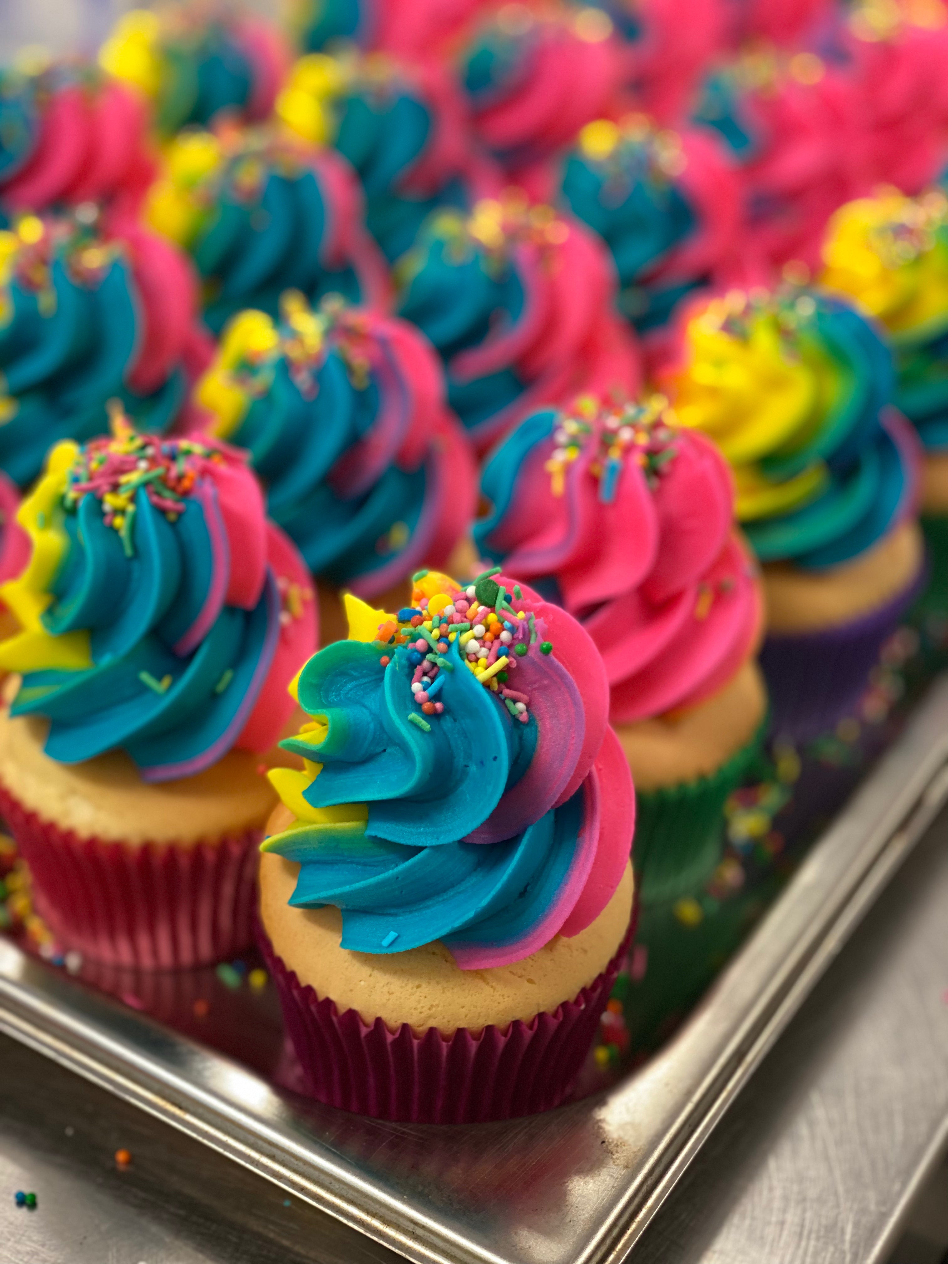 Hello to our famous Rainbow Vanilla Swirl Cupcakes!