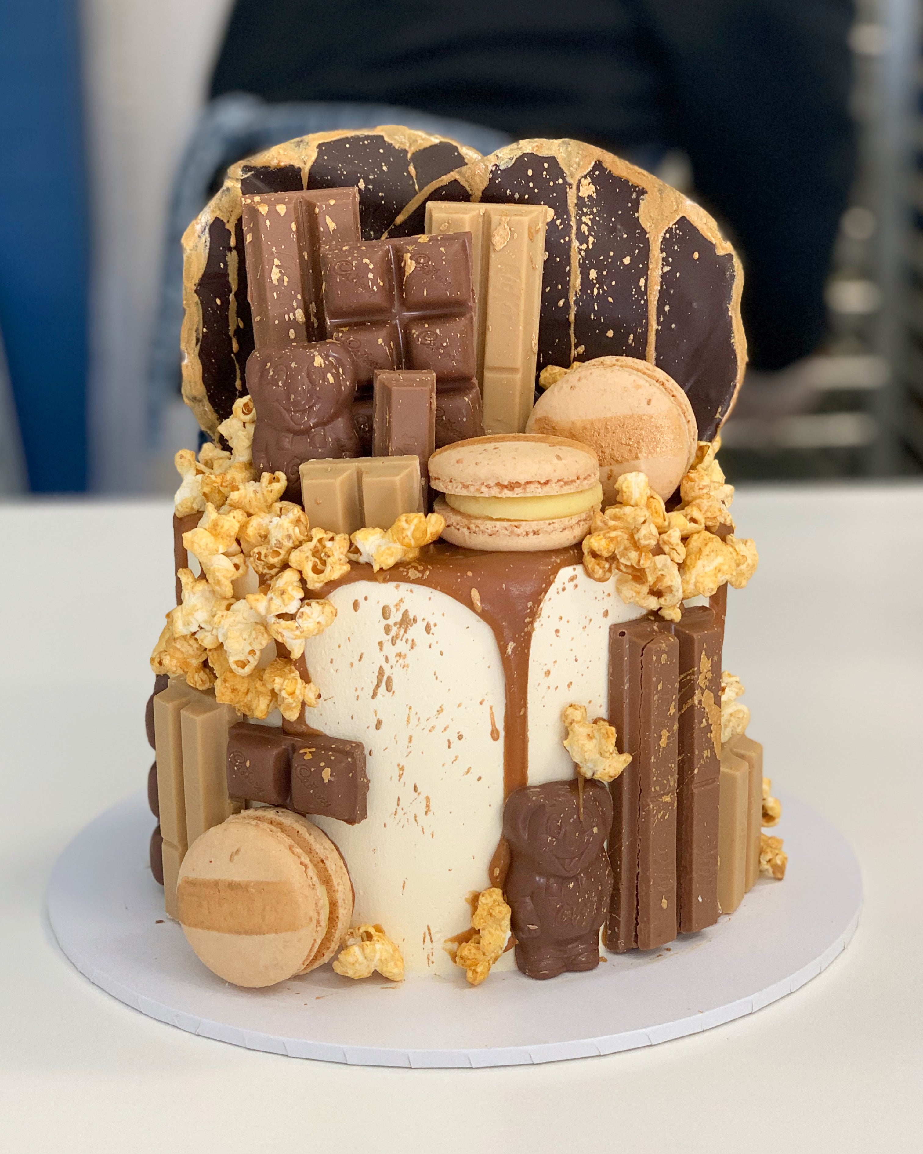 Talk about Insta - worthy! Featuring Vanilla Buttercream, a Caramel Drip, Caramel Chocolates, Kit Kats, x 3 Vanilla Macarons, Caramel Popcorn & that Golden Splatter!!(Please note chocolates may change due to availability.)