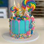 You can't not love anything about this cake! Featuring Lollipops, freckles, gumballs, mini m&m's & more.