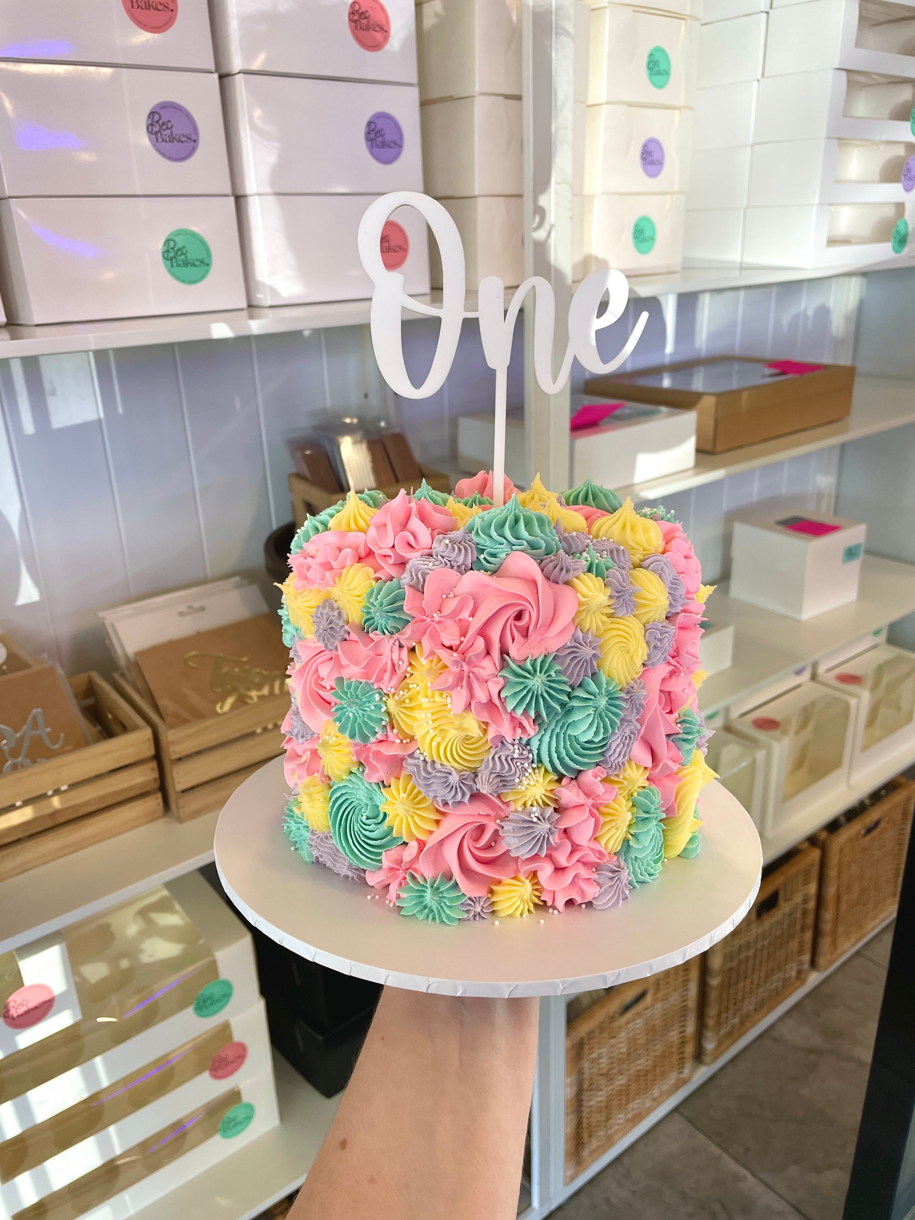 Pastel Swirls covering the whole Cake in our incredibly delicious French Vanilla Buttercream.