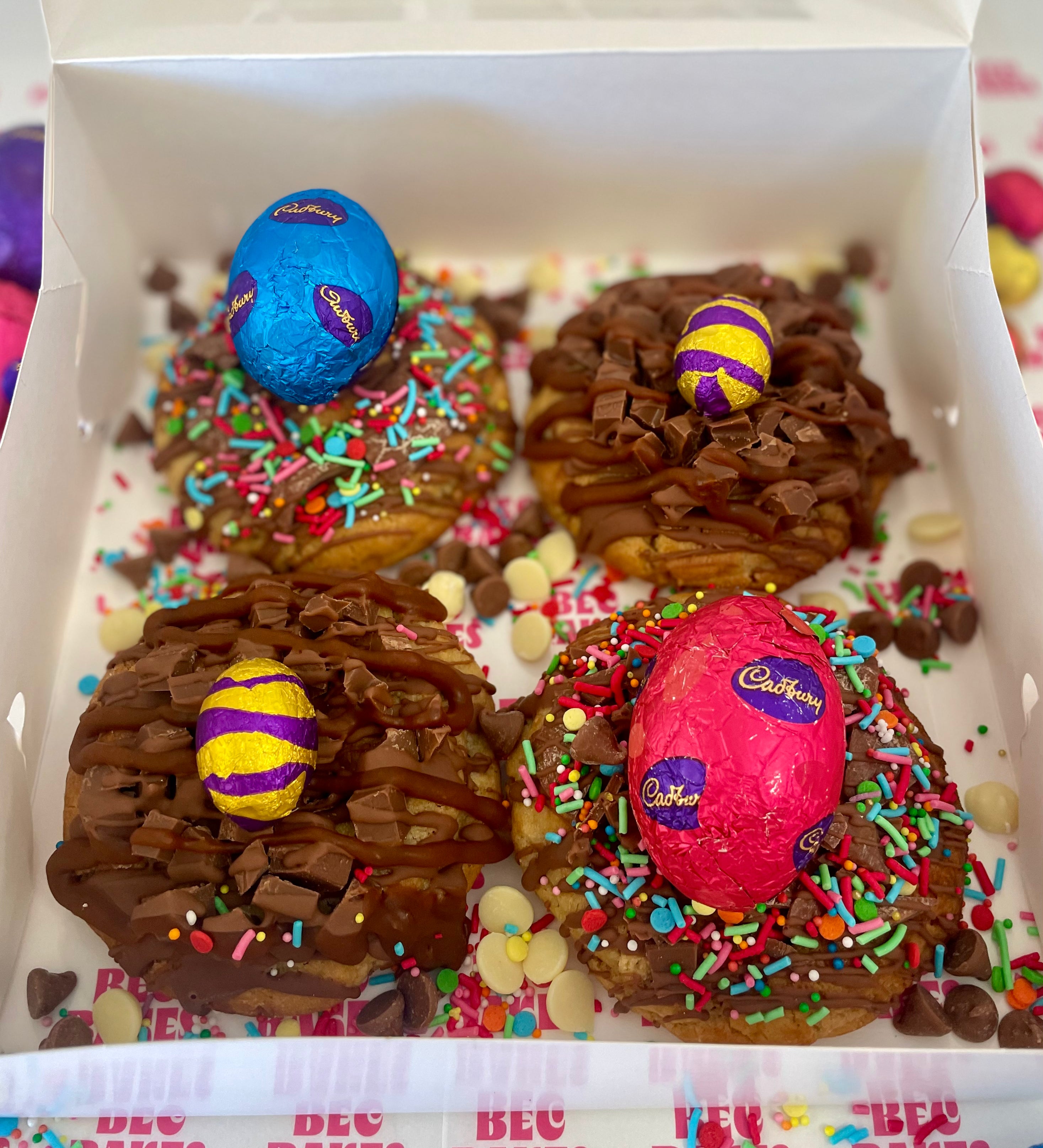 Celebrate Easter with loaded cookies, decadent slices and our iconic Hot X Cookie Buns — a chocolate hot cross bun stuffed and topped with our OG cookie.