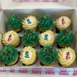 Included in this box is 12 x Medium Vanilla Cupcakes topped with Green & White Buttercream, Sprinkles & Edible Image Toppers.