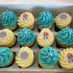 Celebrate in style with our Mermaid cupcakes! Six cupcakes are topped with edible mermaid images, while the others are decorated with matching buttercream. A magical and delicious mix for every mermaid lover.
