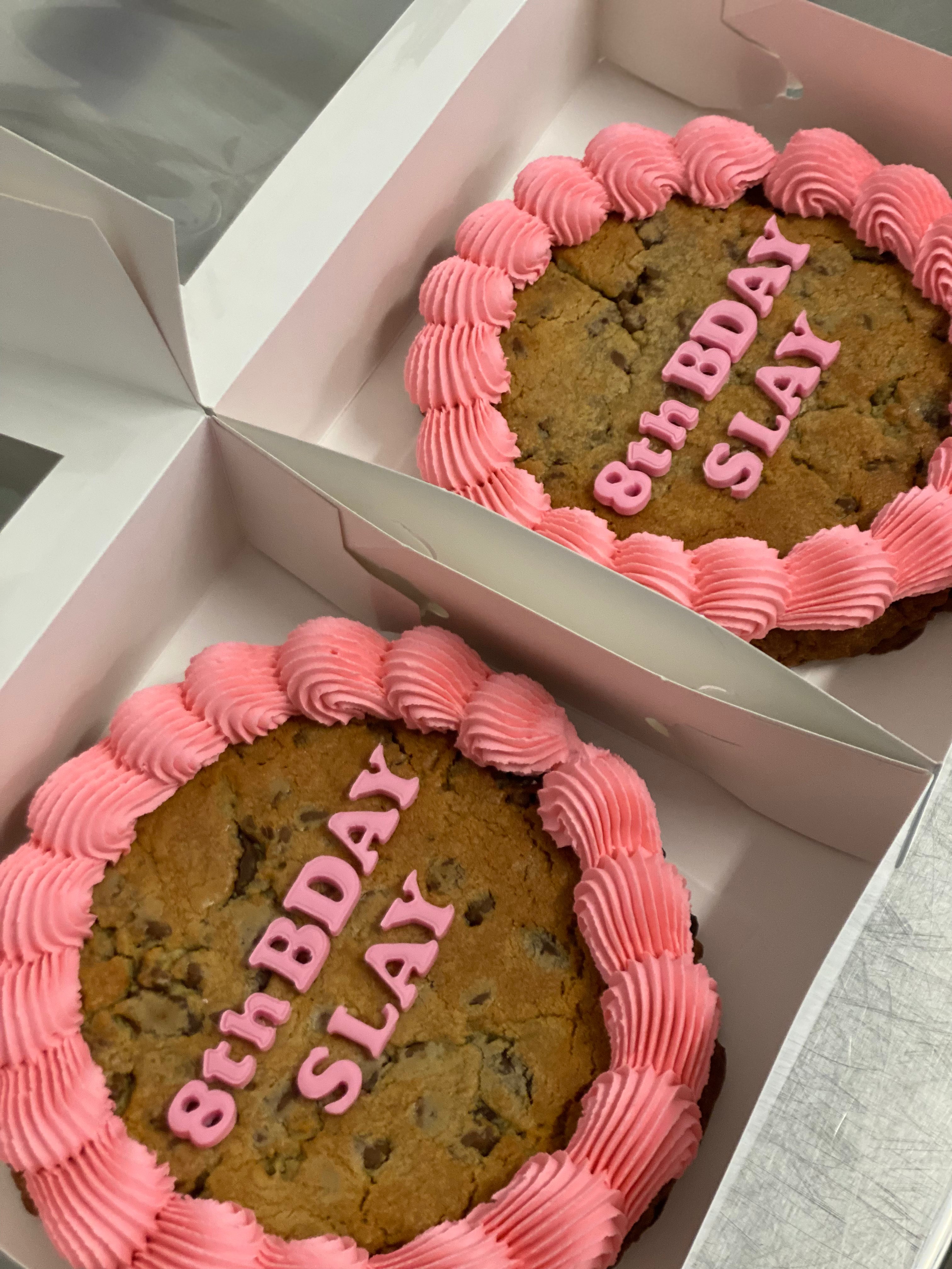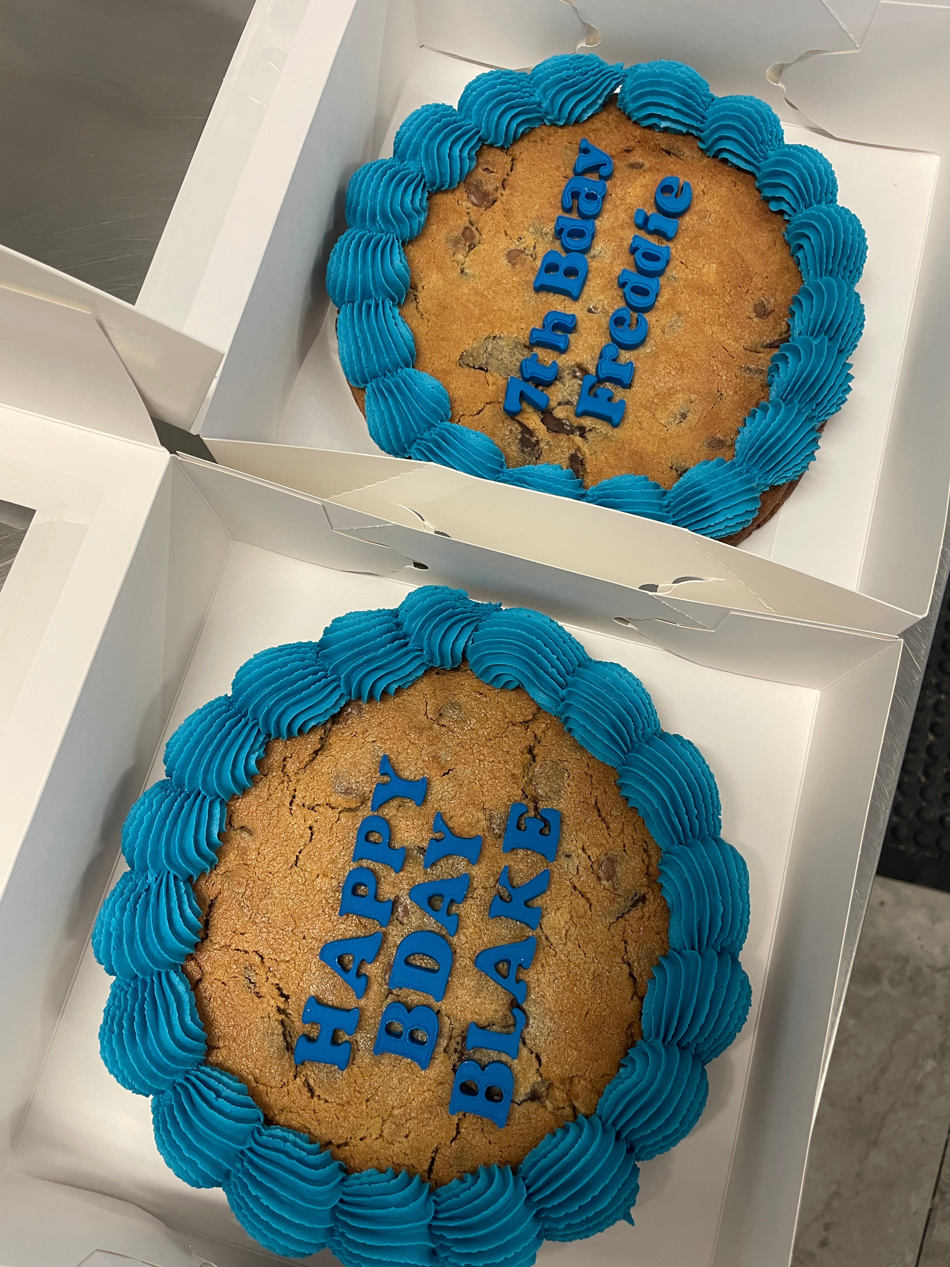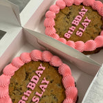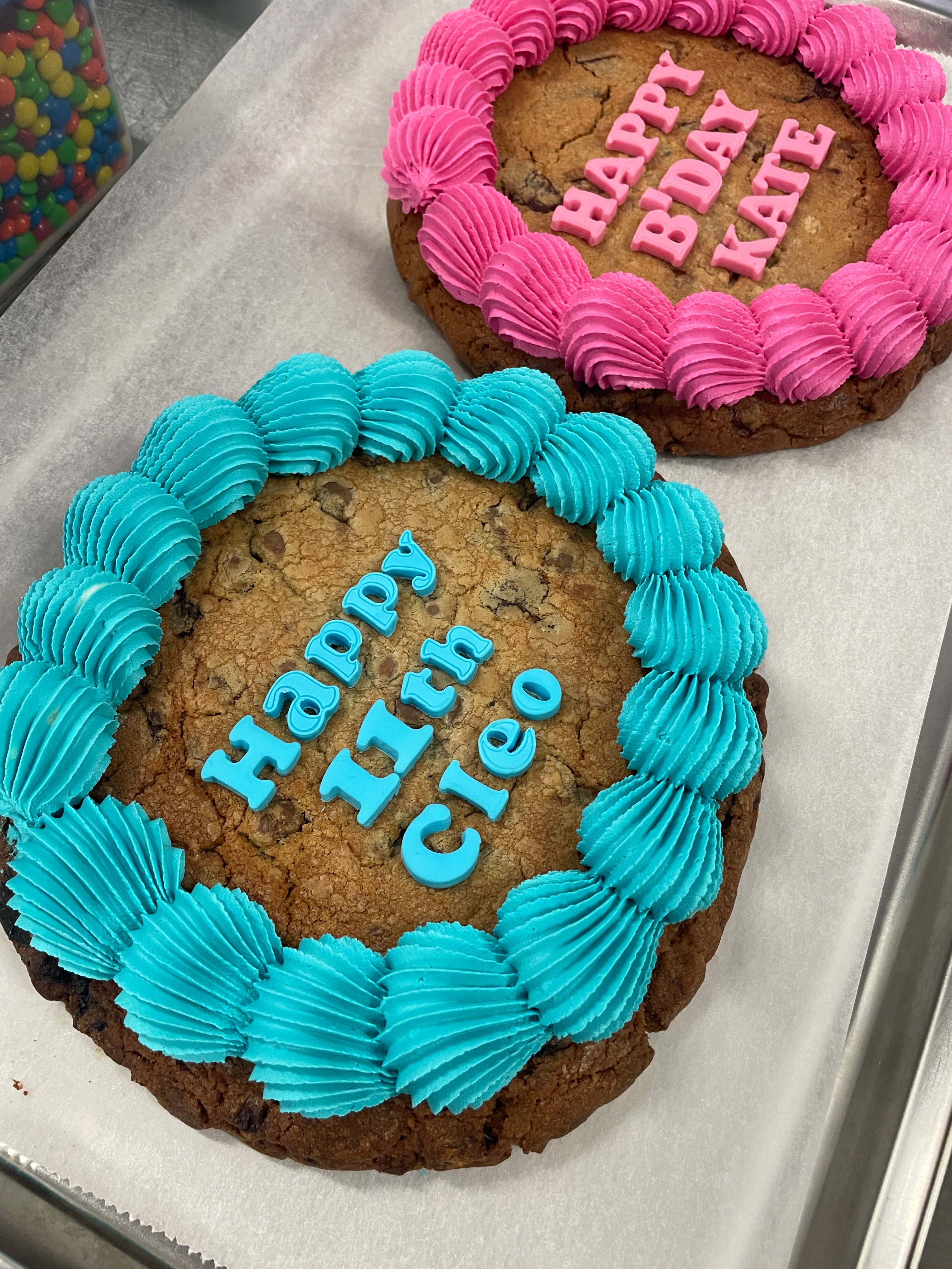 Customise one of our Giant Choc Chunk Cookie with an edible fondant message.