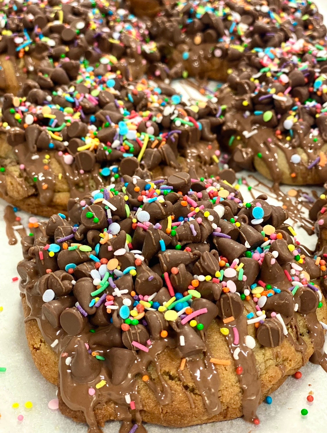 What's better than our Mega Choc Chunk Cookies? Our Mega Choc Chunk Cookies drizzled with Cadbury Dairy Milk Chocolate and sprinkled with more Choc Chips!