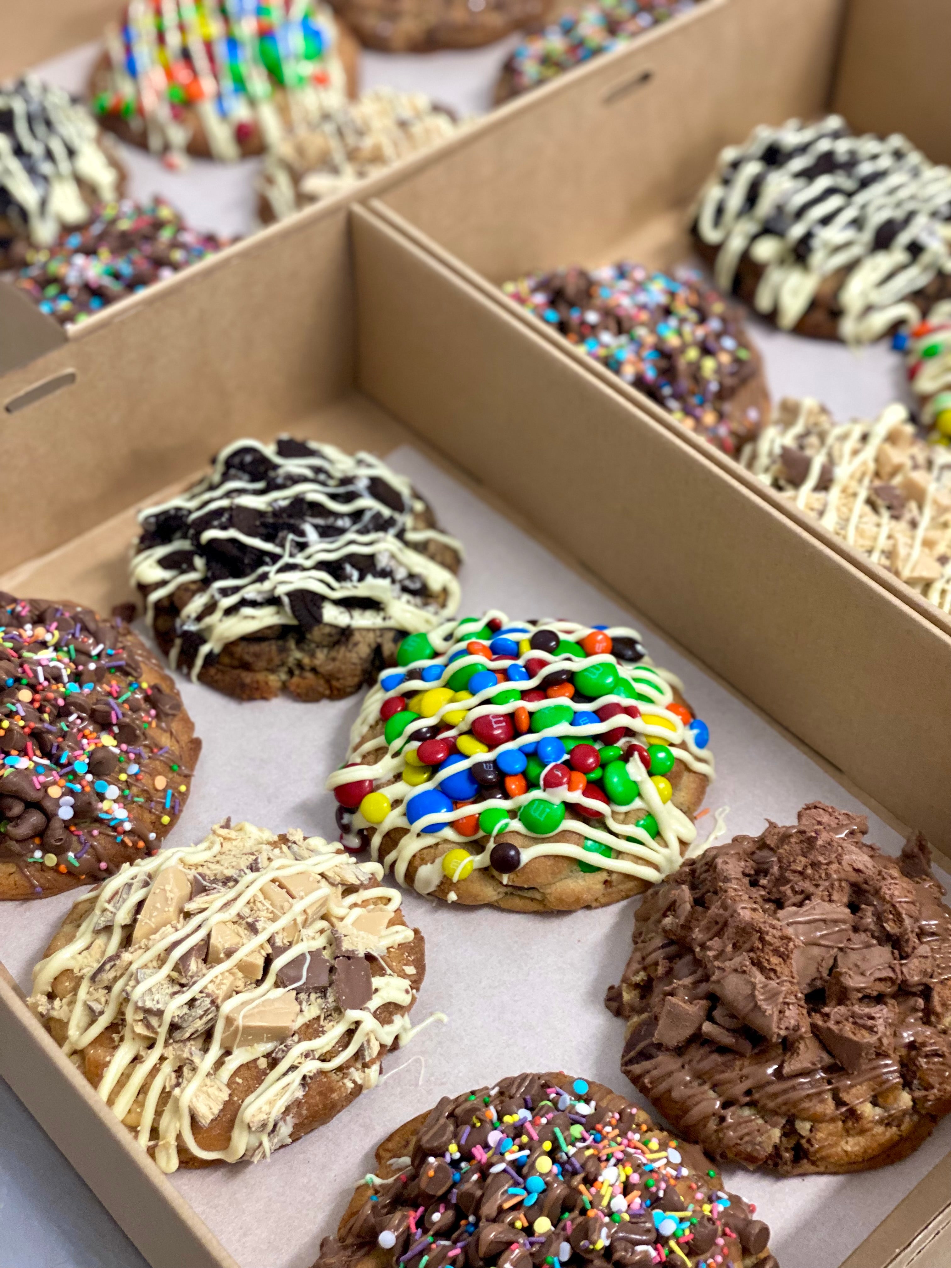 What's better than our Mega Cookies? Our Mega Cookies drizzled with Cadbury Chocolate and loaded with delicious bits and pieces.