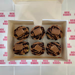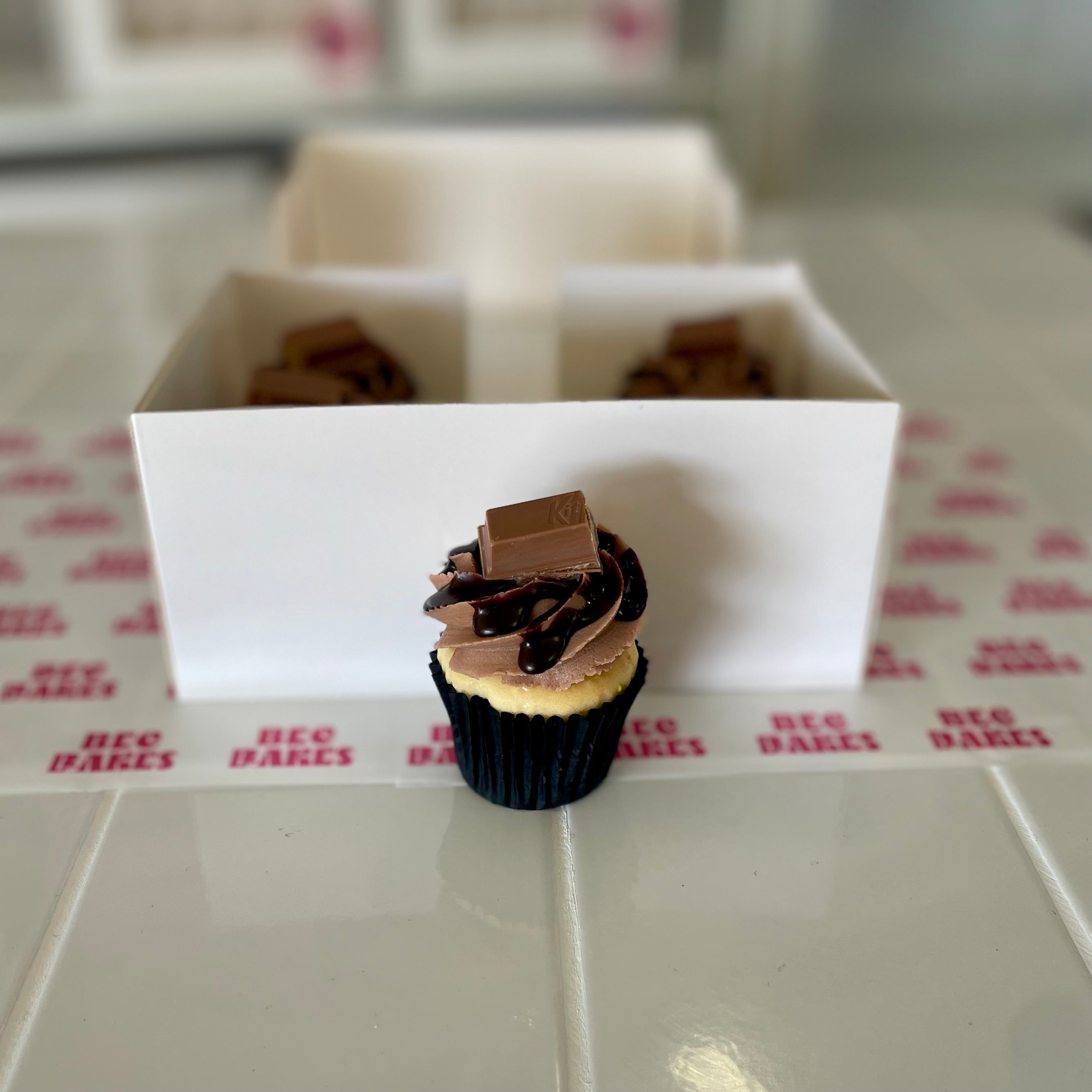 This box contains 6 Vanilla Cupcakes topped with Chocolate Buttercream, Chocolate Ganache & Kit Kat Piece.